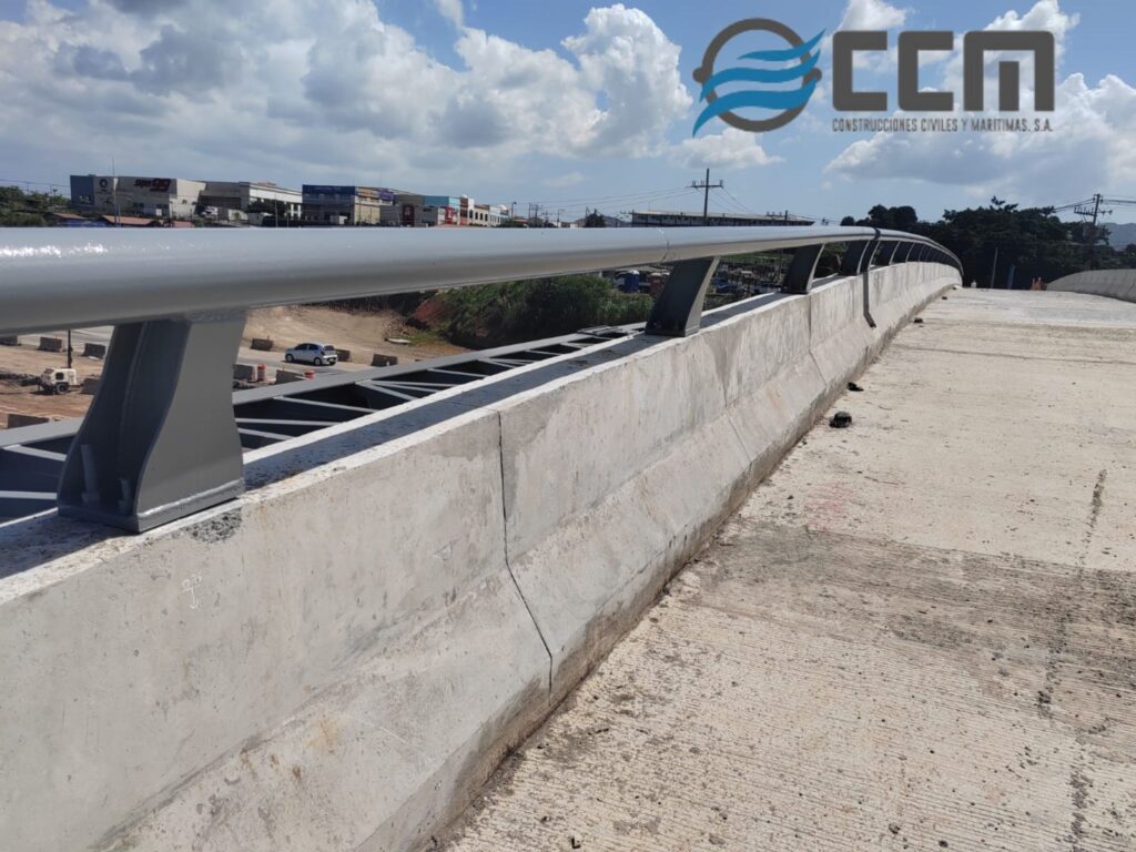 • Instalación de 3 kilómetros de barrera antivuelco galvanizado en caliente, en todos los puentes vehiculares del proyecto.